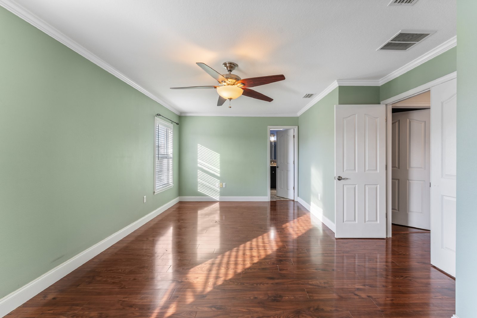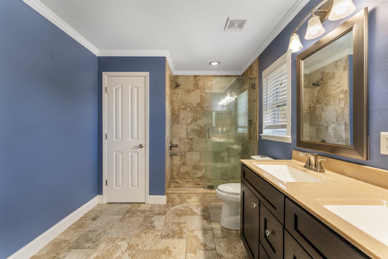 As you step inside this rental home, you'll be greeted by the tasteful updates throughout. Both full baths have been transformed with new vanities, intricate tile work, stylish mirrors, and ambient lighting. The comfort-height dual flush commodes and elegant glass doors in the master shower add a touch of luxury. The Master walk-in closet features a custom shelving system, designed to accommodate even the most extensive wardrobe collections.